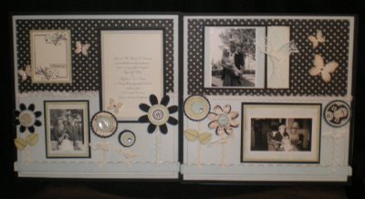 For quite a few months I had been looking for something to inspire a layout I wanted to do regarding my hubby’s grandparents . . . well a few months back (okay quite a few months) I saw the cover of the Autumn/Winter 2008 Close to my Heart catalog and I knew that this is what I was looking for . . . soooooo . . . I ordered the paper called “Perfect Day” (along with the sticker sheets) and literally scraplifted the layout from the cover that I had so admired.