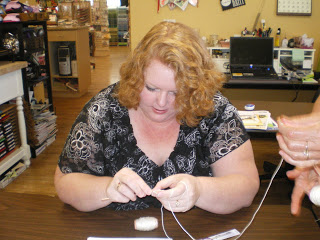 A big THANK YOU to the three very brave ladies who showed up on Saturday, May 9th to take my crochet flower class at Paradise Scrapbook Boutique (this was the first time I ever taught a crocheting class). Everyone was given the patterns for making a single crochet flower (beginner); a triple crochet flower (intermediate) and a leaf (advanced) . . . Karen and Christie learned to make at a single crochet flower (it had been quite some time since they last crocheted) and Barbara made not only a single crochet flower, she also made a triple crochet flower . . . WELL DONE LADIES!!! . . . here they are busy crocheting . . .