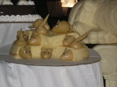 Hopefully you were able to click on the above pictures to get a better look at the layout . . . and I have to tell you my layout does not look exactly like the one Christie did for the class (I even had her original pages in front of me) . . . I have a few boo boos that needed to be covered up . . . which gave me the perfect opportunity to make a brown paper cabbage rose (see the My Creative Scrapbook blog for instructions) . . . I do have to tell you that one of the desserts just made me laugh out load . . . its the picture below of mice eating cheesecake . . .