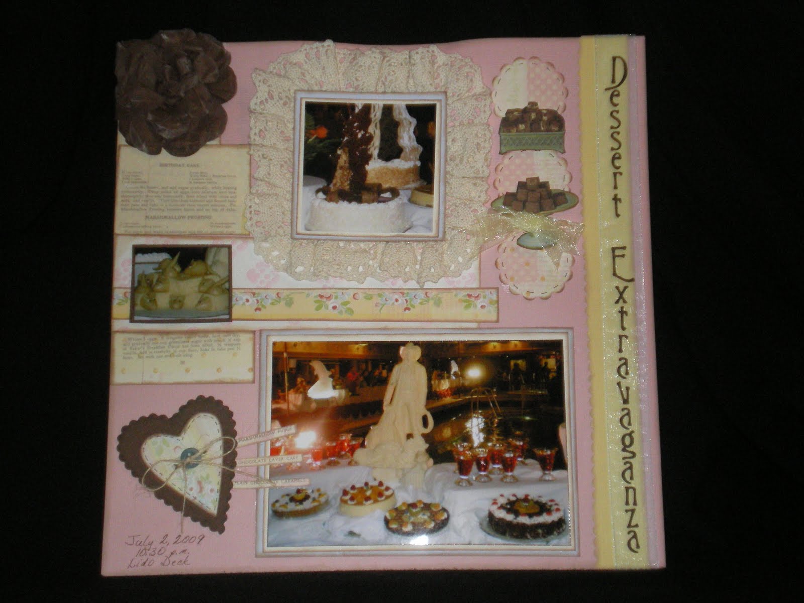 To begin with I would like to share another layout that I did of my cruise to Alaska this summer . . . at 10:30 at night – on the second to last night of the cruise – the ship hosted a “DESSERT EXTRAVAGANZA” . . . I have never seen so many incredible desserts in one place at one time . . . and you could eat to your hearts content (I now know why people who have been on cruises told me to have at least one pair of pants with an elastic waist) . . .