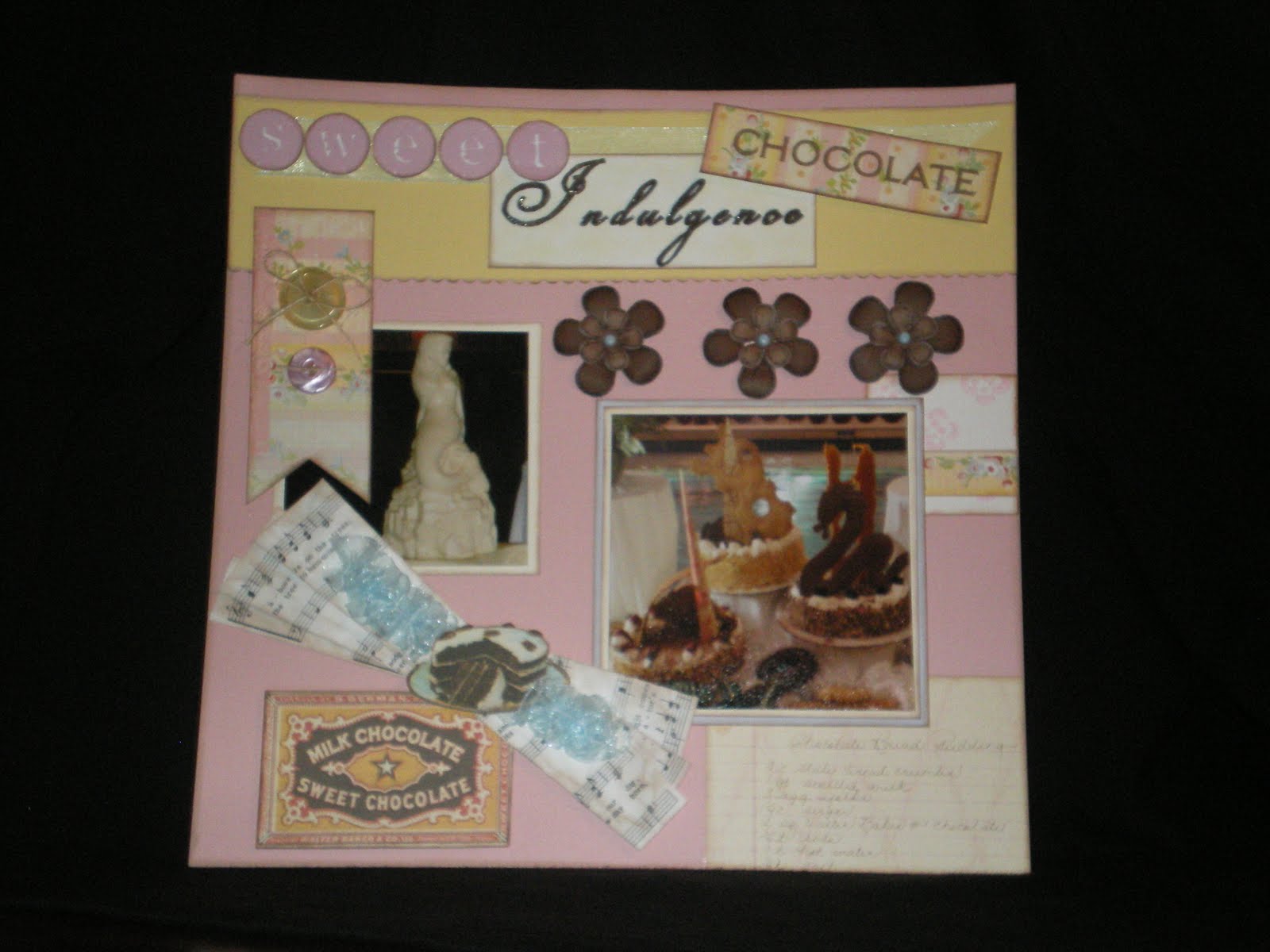 Before my hubby & I went on the cruise I had taken a scrapbook class entitled “Sweet Chocolate Indulgence” which was taught by Christie Bryant at the Paradise Scrapbook Boutique . . . I loved Christie’s layout but at the time I didn’t know what pictures I would be placing on it (thought I was going to have to bake something – heaven forbid) . . . well needless to say I found the perfect pictures for the layout – or at least I think so – what do you think?????