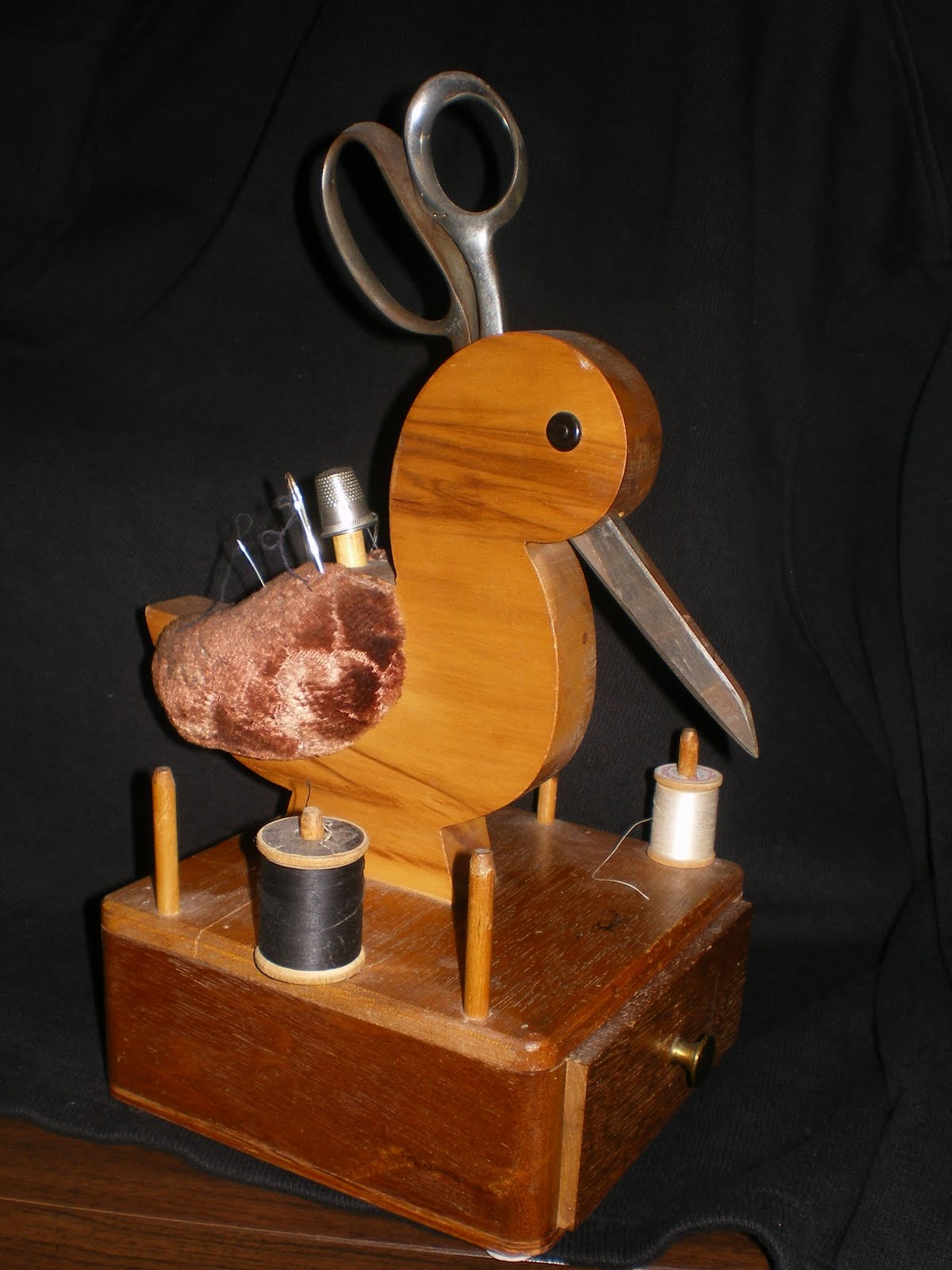 When my mother-in-law passed on I was told to choose one item that had very special meaning to me . . . it was a very hard thing to do as I had known this women for over 46 years and considered her to be the mother I never had and always wanted . . . there were so many memories wrapped up in “things” around the house . . . I choose the wooden duck sewing box that her father made for her shortly after she was married . . . my mother-in-law hated to sew and when she found out that I did sew . . . well every time I was over at her house she always needed something hemmed or a seam fixed or even a button sewn on . . . . sometimes she even called me to get me over to do a little project and I was only just dating her son . . . so it seemed very natural for me to choose this duck as my special memory of her . . .