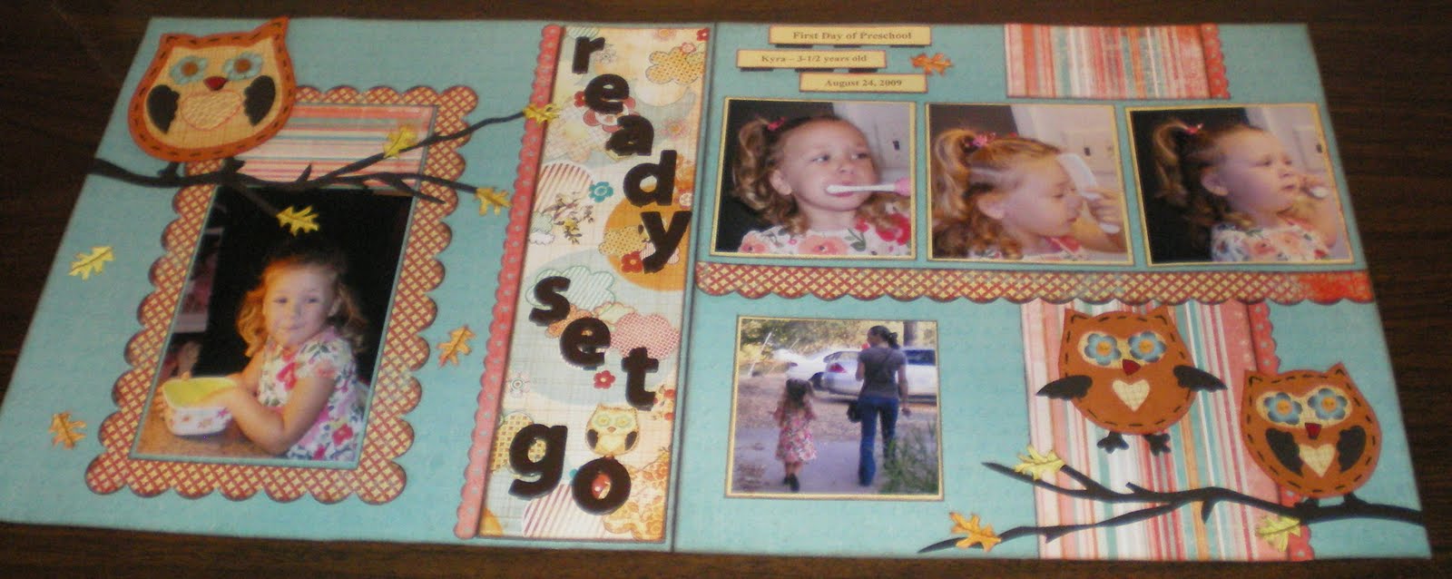 Layout number 3 is about my granddaughter getting ready for her 1st day of preschool . . . she was sooooooo excited (can you remember how excited you were very year . . . how you couldn’t sleep the night before and then you were up at the crack of dawn making sure that you looked perfect and that you would not be late . . . I sure do!!!!) . . . well Kyra has followed in her mother’s and YaYa’s footsteps . . . so being the good little YaYa I look pictures of her getting ready . . .