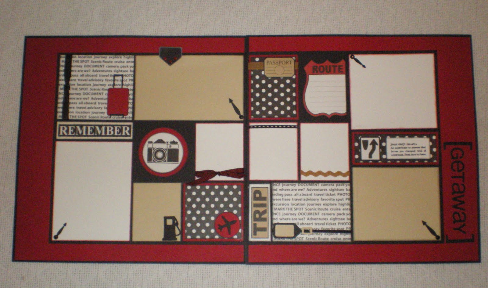 This was a kit I purchased back in 2008 (only know this because of the copyright date on the Teresa Collins paper) from MMK scrapbook store in Chico that is no longer a physical store (Michelle, the owner, now has an on-line store) . . . I was also lucky in that the instructions, bits & pieces and a colored picture were all there so it was easy to complete (YAY) . . . the line of paper that was used was Teresa Collins “Travelogue” and I remember at the time of purchase that I thought this would be a perfect layout for putting pictures of our Disneyland trip with our granddaughter . . . as you can see there are no pictures as we have not taken our granddaughter to Disneyland yet . . . but I am now ready with this layout when we do (hehehe). . . . . . Well, that’s all for now . . . thanks for stopping by and until next time . . . Hugs & Kisses – LindaB