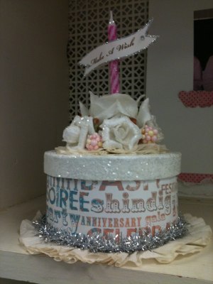 Happy Saturday Everyone . . . I wanted to share with you today a little container I made to put a handmade gift into for a sweet friend for her birthday . . . I will share with you, at a later date, the gift I made her (just in case she reads this posting) . . . I am known by my scrappy friends for these rounds boxes I decorate to look like little cakes . . .