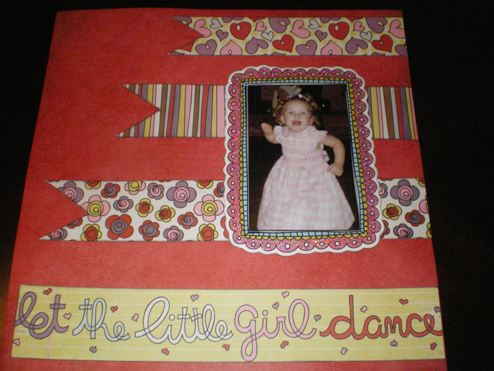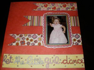 Good Evening everyone! I know it has been a little while since my last blog, but like everyone else sometimes life takes over and you are very busy!!! That’s my story and I am sticking to it-LOL. . . Tonight I would like to share with you one of those layouts from my stash of incomplete layouts . . . yes, I finished another one (LOL). . . you would think that the cabinet that is storing all of those incomplete scrapbooking layouts would be going down, but nooooooo it doesn’t look like it yet . . . anyway back to the layout I did complete . . . Back in 2008 my hubby and I attended one of our son’s high school friends second wedding. Also invited to this wedding was our daughter and granddaughter . . . it was a very nice proper wedding until the live band began to play at the reception . . . all of a sudden little girls came out of the woodwork and took over the dance floor . . . they were having so much fun and we adults were enjoying their free style form of dancing a lot . . . the poor bride and groom had to cut and serve the wedding cake to get these little dancing queens off the dance floor . . . so drum roll please here are some pictures of my granddaughter having the time of her life . . .