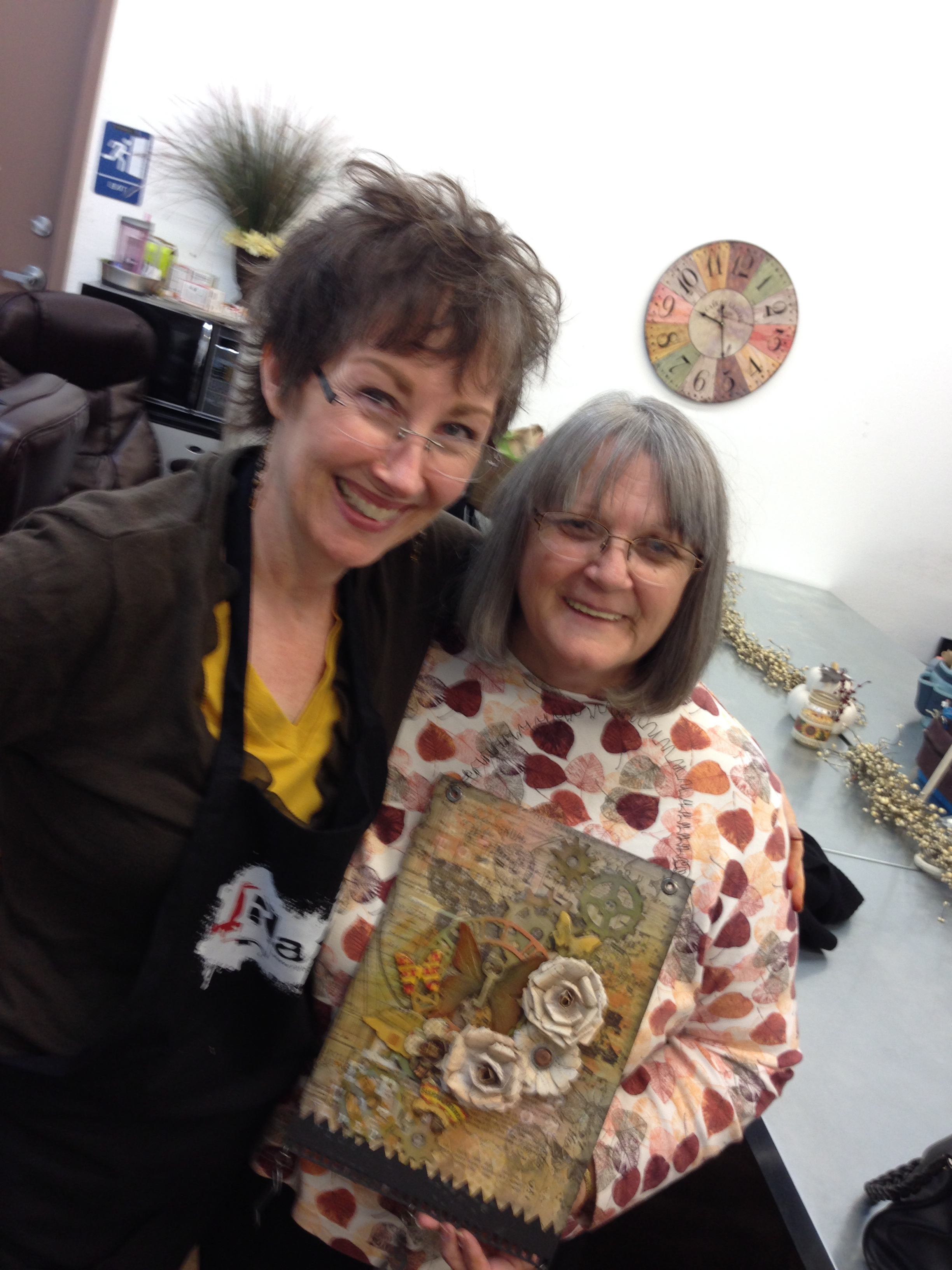 Barbara Adams (local mixed media artist/scrapbooker – no picture of the two of us – just a picture of the project she taught and no web site address)