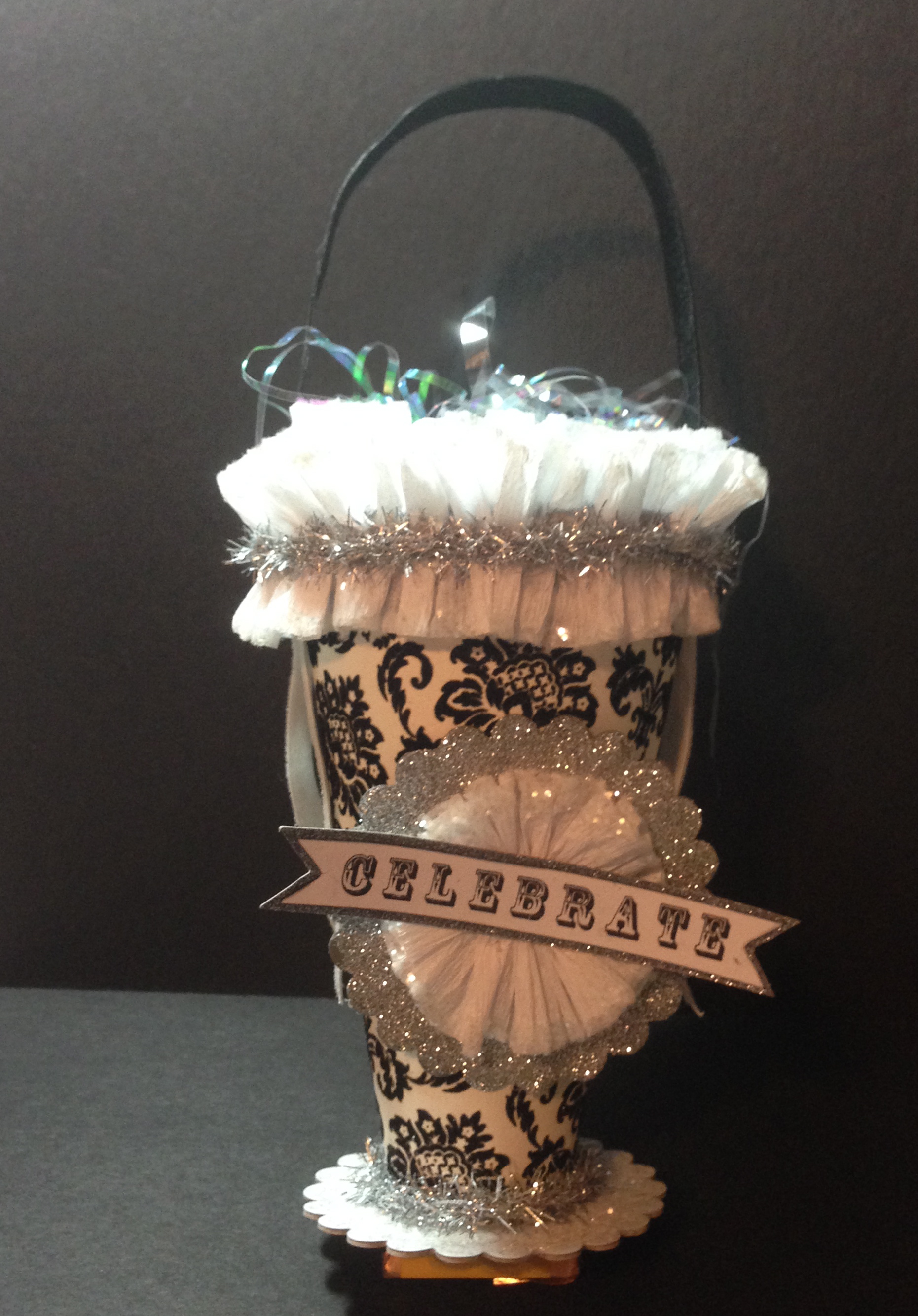 A couple of years ago I was surfing the web and came across a blog called Creative Chaos. Some of you may all ready know about and have visited this site created by Karin. I fell in love with how she decorated a paper cone and have been making them ever since as containers to hold birthday/holiday gifts. They are a perfect size. You can stuff a knitted scarf or hat in it, fill it with homemade candy or cookies, have a bouquet of paper hearts, or shamrocks or bunnies on sticks standing tall in it or even fresh flowers (put rock on the bottom and a small empty glass jar to hold the water on top of the rocks). The possibilities are endless.