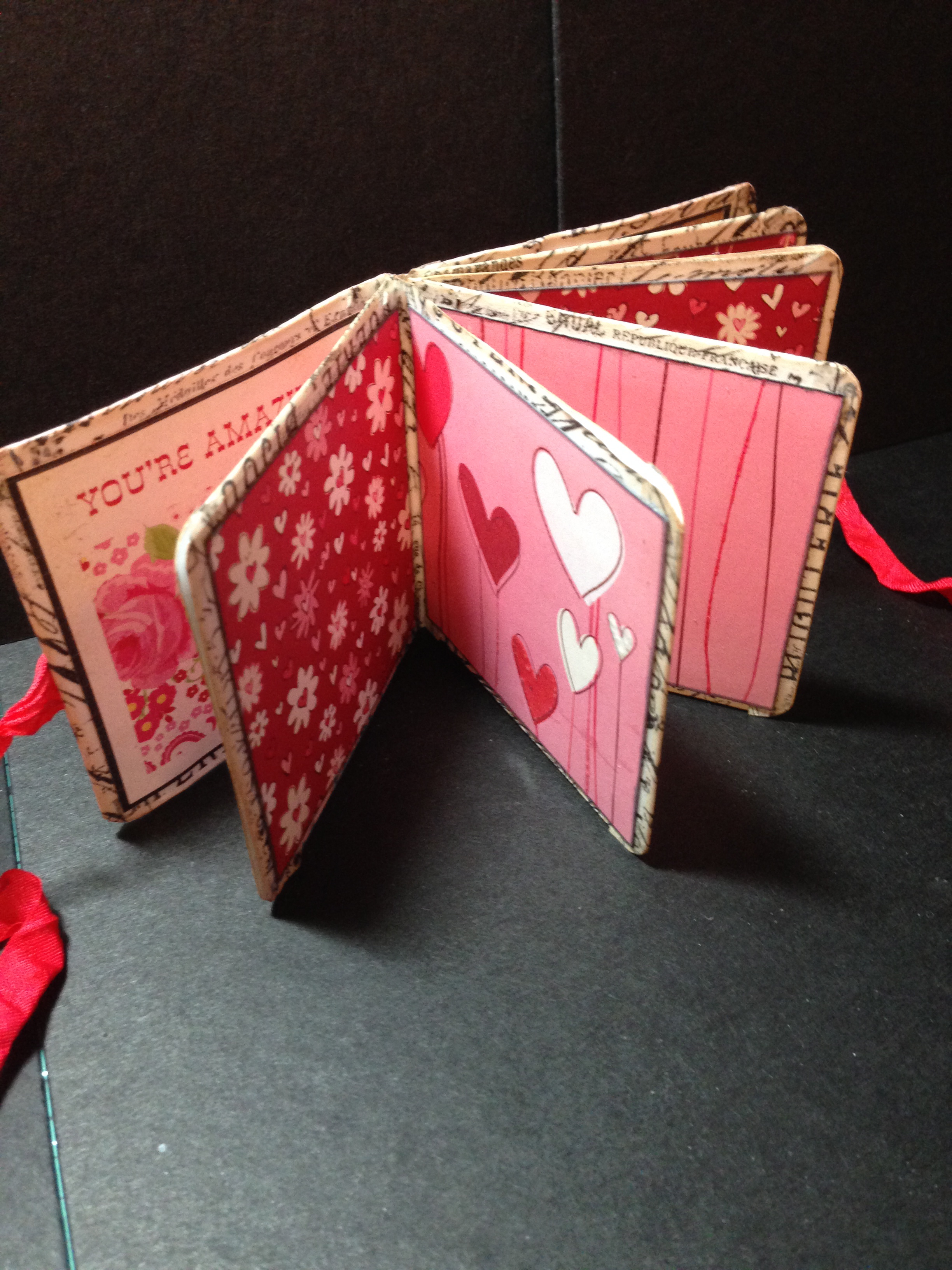 Oh and I almost forgot one more element to this amazing little mailbox. Teri taught us a Tim Holtz’s technique for making a little album using just 1 sheet of 12″ x 12″ paper. . .